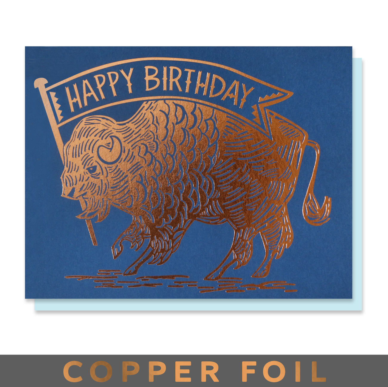 Celebrate the wild and wonderful spirit of the buffalo with this unique and elegant birthday card. Featuring a rugged Americana design accented with shimmering copper foil on a rich dark blue background, this card embodies strength, resilience, and timeless beauty.